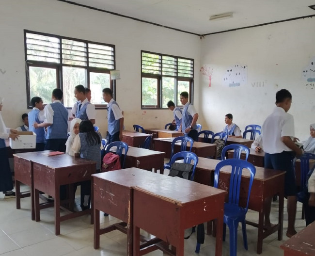 KEGIATAN ANGGOTA OSIS SMPN 3 SUTA MEMBANTU SISWA TERKENA MUSIBAH