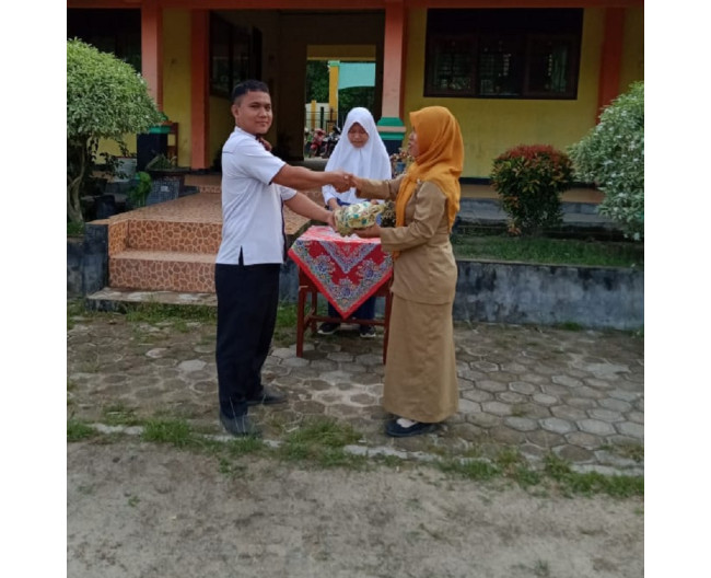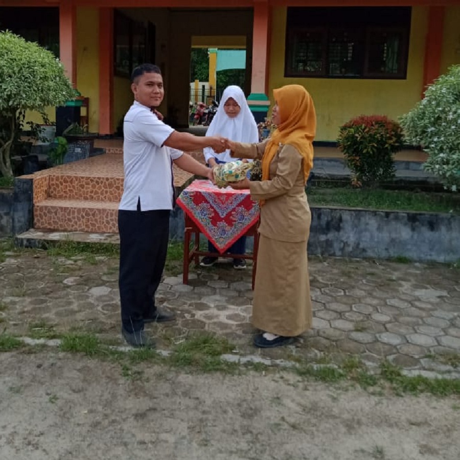 Penyerahan Kado Secara Simbolis Dari Siswa/i Kepada Kepala SMPN 3 Suak Tapeh