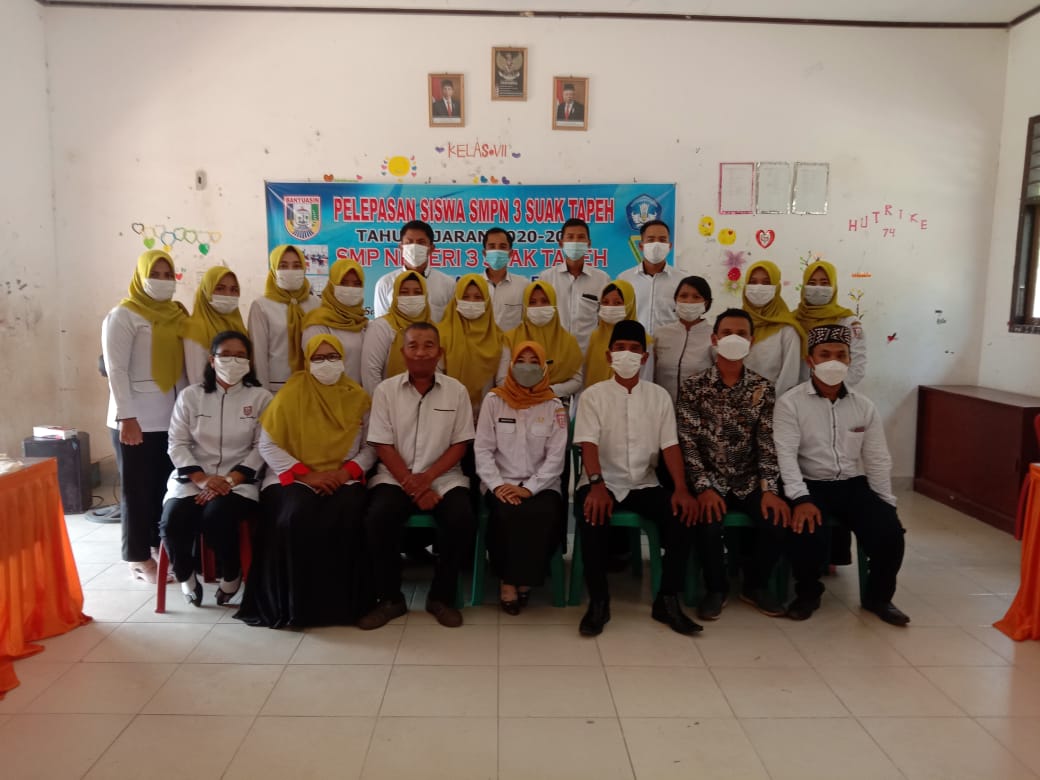 Foto bersama dalam rangka pelepasan siswa/i kelas 9 SMPN 3 Suak Tapeh 2020-2021